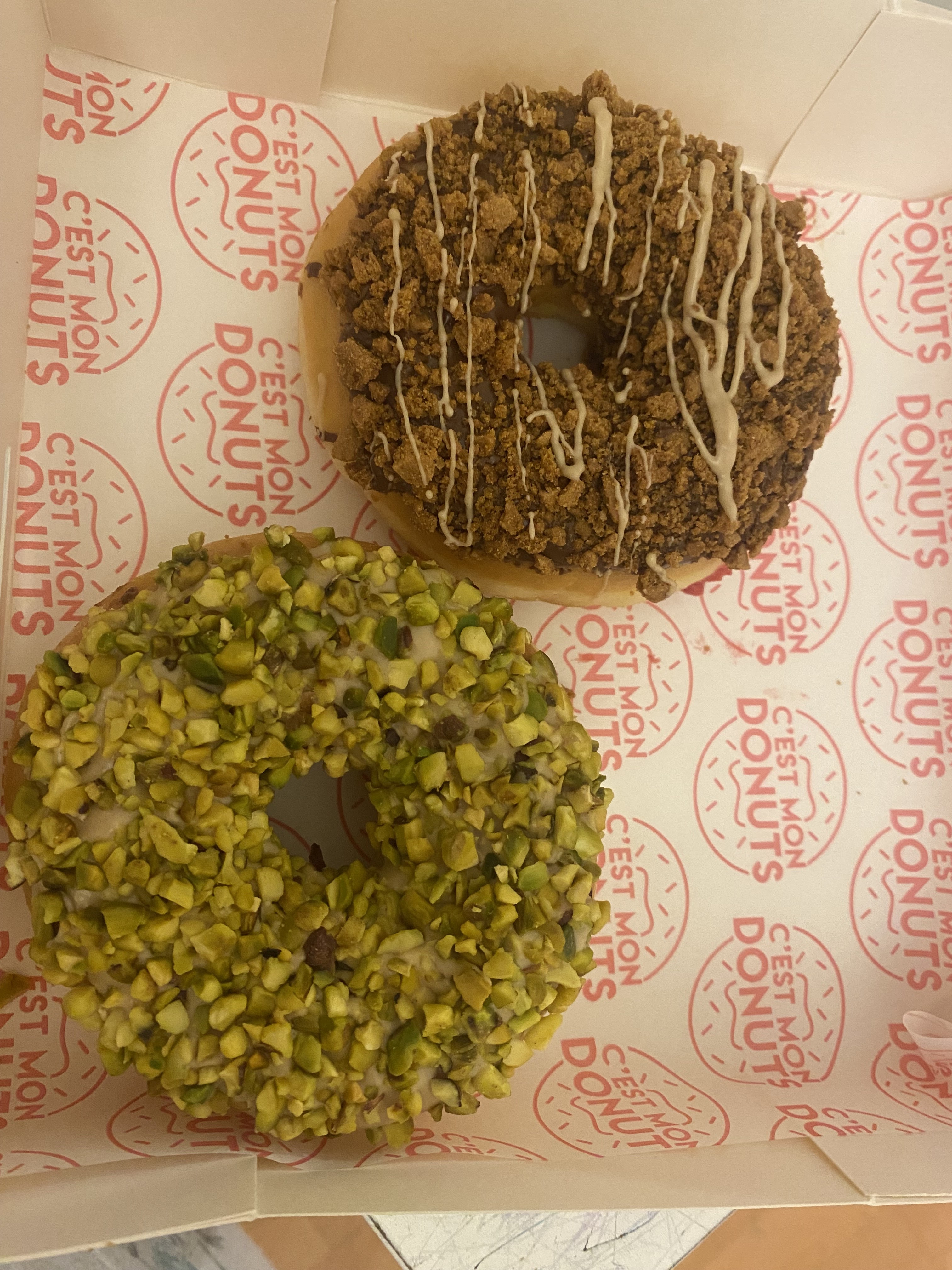 "Très jolis donuts. J’ai adoré le oreo personnellement ! Le prix est un peu excessif pour ce que c’est sachant qu’ils ne sont pas fourrés.. c’est dommage. Le Kinder Bueno est assez classique je ne le trouve pas ouf spécialement."