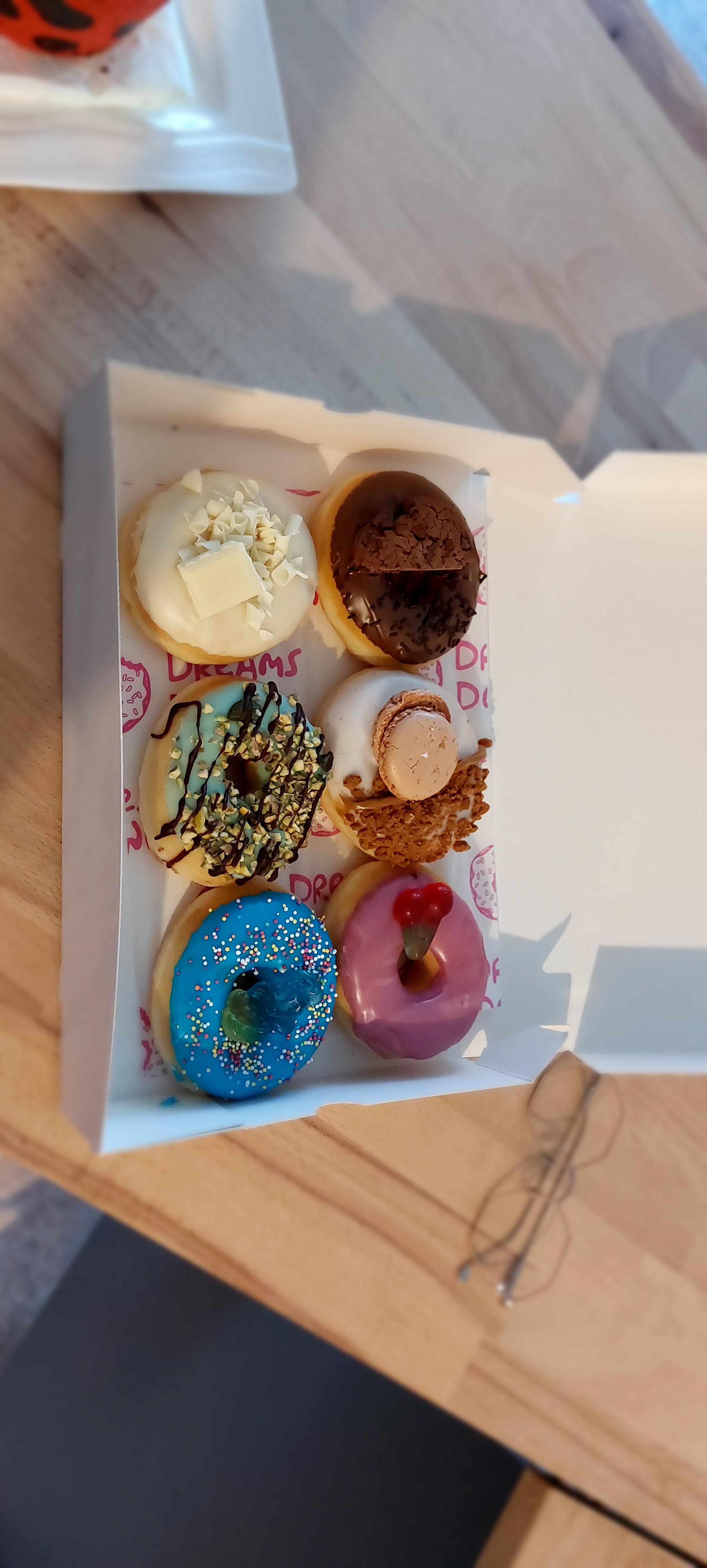 Posté le 24/05/2022 à 10:17"Je m'y suis rendu pour l'anniversaire de mon petit ami qui est très fan de donuts, Je lui ai prit une boite de 6 ou il a choisit ses parfums pour mon plus grand plaisir. Verdict: Il s'est régalé et a même souhaité y retourner dans la semaine pour une boite de 12! Nous sommes emballé et avons hâte que Dreams Donuts s'étale davantage dans le reste de la France ♡ je recommande"