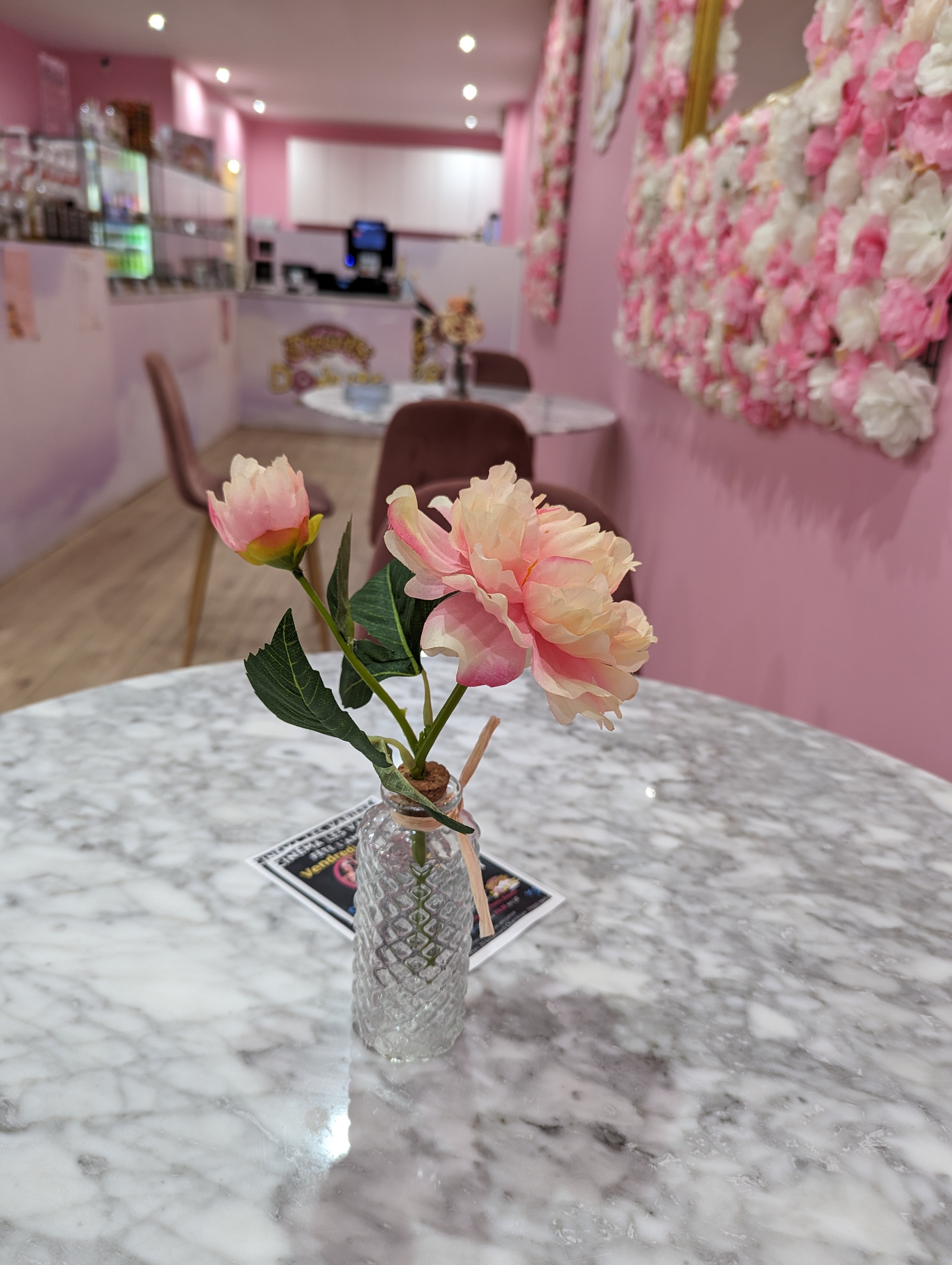 Le concept est sympa et unique sur Melun. Nous avons pris des donuts, bubble tea et chocolat chaud. Nous avons été bien accueillis et servis très rapidement. Pour ma part j’ai trouvé les donuts un peu trop sucrés mais mes filles ont adoré. La déco est très sympa.