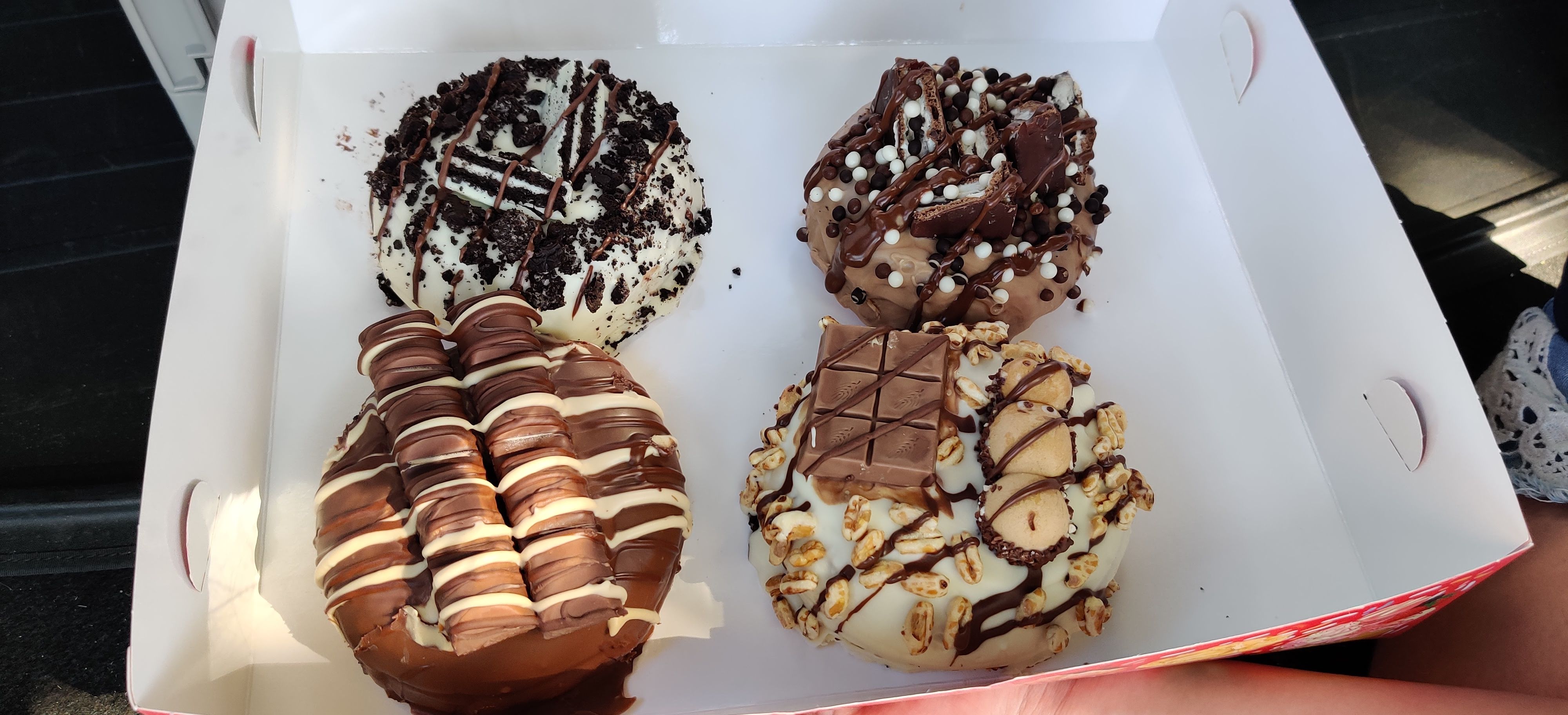 De beaux donuts en l'occurrence avec un prix assez élever mais si encore le prix en valait la peine sa irait mais ce n'est pas le cas ce ne sont pas des donuts maison ou alors je suis tomber sur ceux de la vieille sa ma coûter 30 euros qui sont partis à la poubelle très déçu...