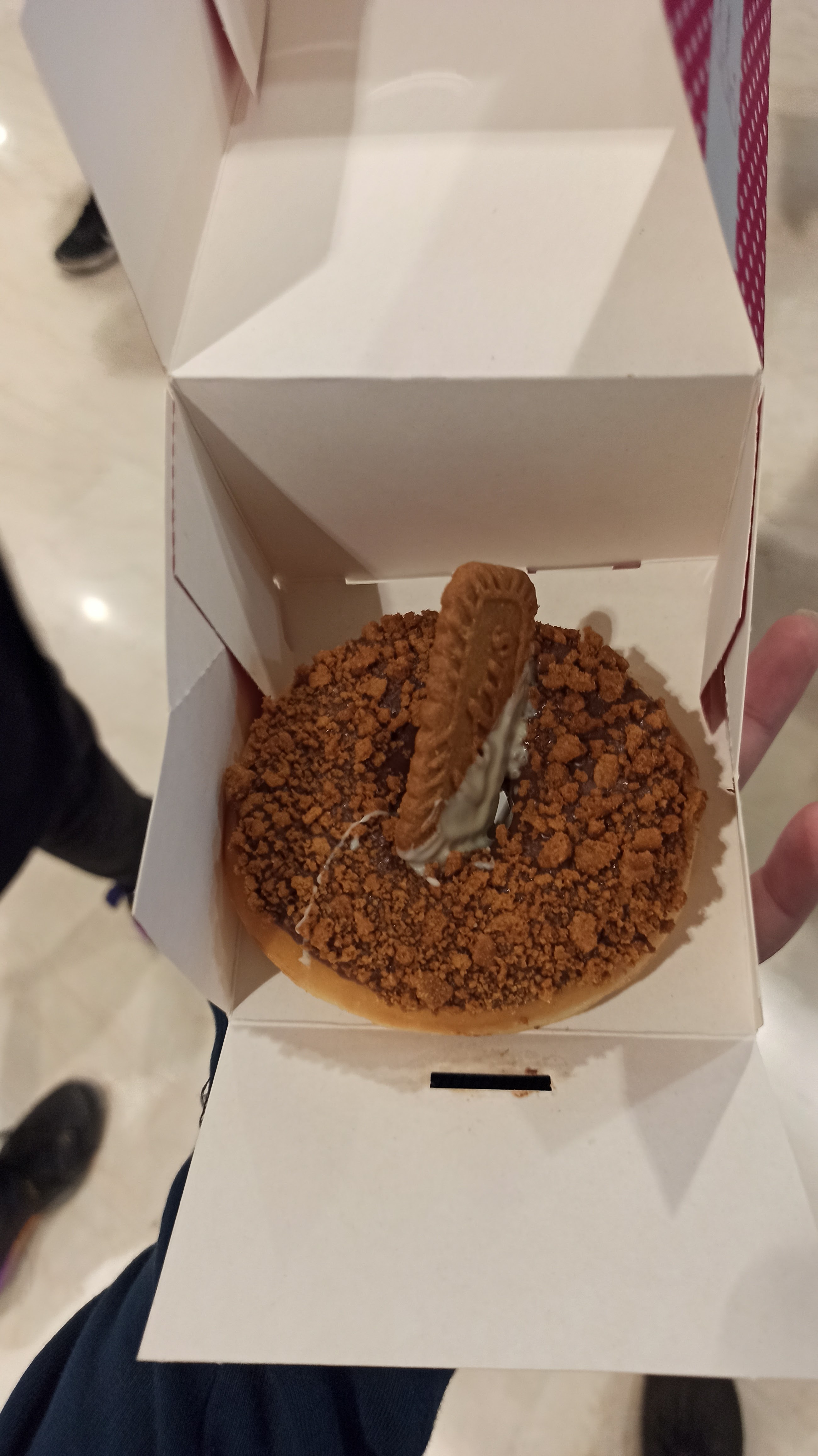 Posté le 20/10/2021 à 18:24"Situé dans un petit stand à l'intérieur du centre commercial d'aeroville, on s'est laissé tenter par les donuts de cette nouvelle enseigne qui visuellement donne vraiment envie. Choisir est difficile il est vrai qu'ils nous donnent réellement envie. Si vous optez pour un simple c'est 2,5€ un plus elabore 4,5€. Il en va de même pour les cronuts. Pour avoir déjà tester des cronuts excellents, j'ai trouvé que ceux la au visuel n'avait pas l'air excellent. J'ai donc choisi un donuts au kinder Bueno White fourré à la pâte à tartiner maison. Mon ami a pris un simple au deux chocolats. Pour le mien, j'ai bien aimé surtout lorsqu'il y a le kinder ça croustille et ça fond en bouche c'est vraiment top. Par contre les endroits où il n'y a pas le kinder manque de pâte à tartiner. J'ai goûté celui de mon ami que j'ai trouvé fade et le chocolat blanc trop sucré"